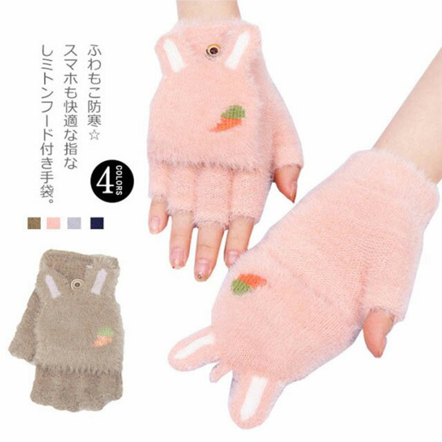 ふわふわ 手袋 厚手 レディース 寒さ対策 ミトンカバー付き 指切り 2way ミント手袋 グローブ・・・