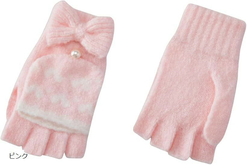 ケンアール 手袋 女の子 2way ミトングローブ 子供 キッズ かわいい スマホ対応 指なし リボ・・・