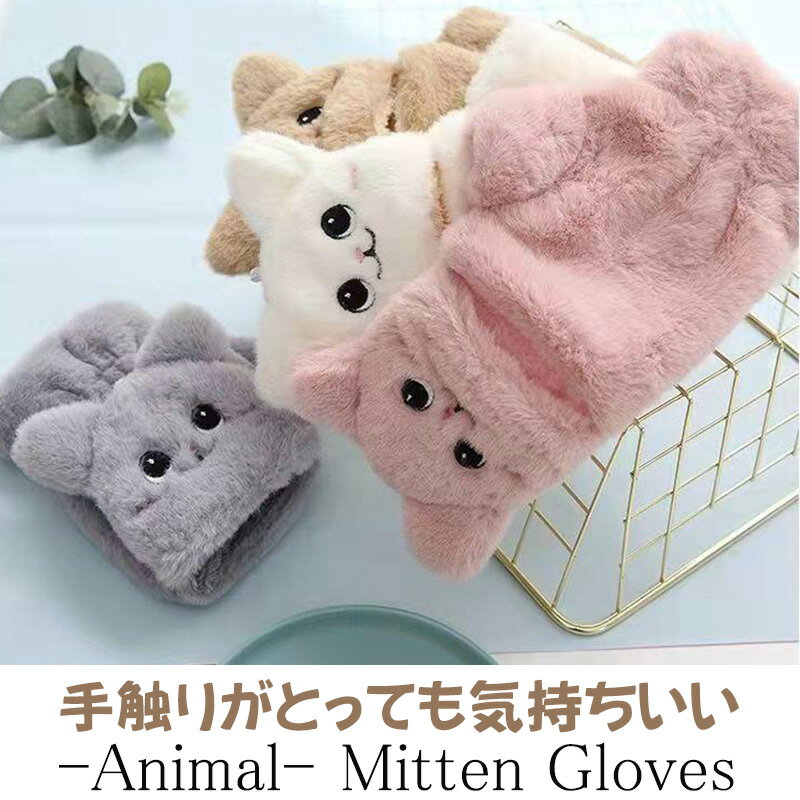 手袋 ミトン アニマル 裏地ボア 指なし 2way キッズ 女の子 レディース 子供 防寒手袋 動物・・・