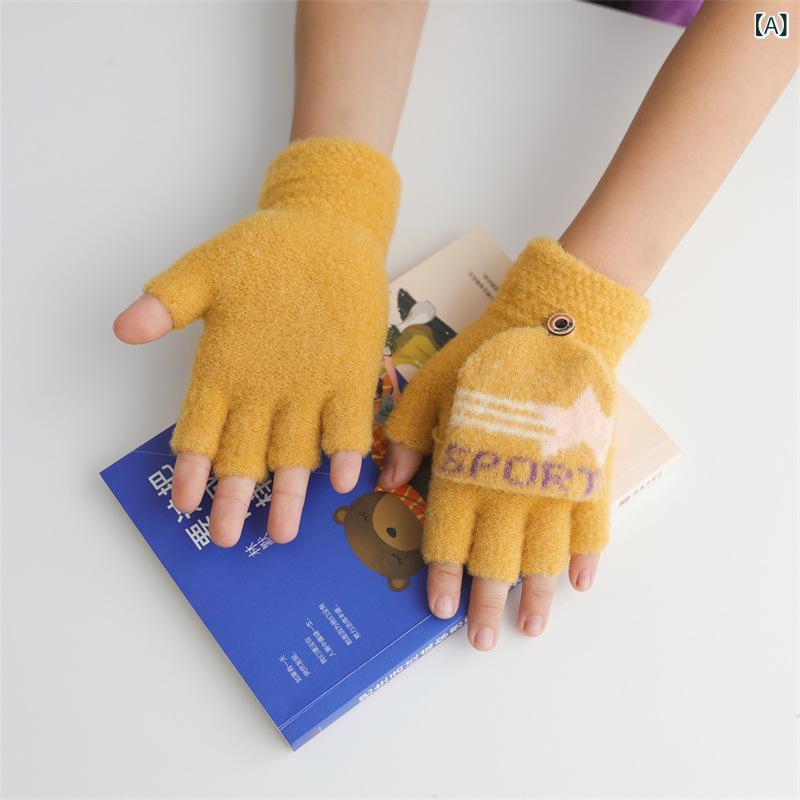 ポ 冬物 学習用 高学年 低学年 園児 中学生 小学生 ミトンカバー付き 2way 指なし ニット ・・・