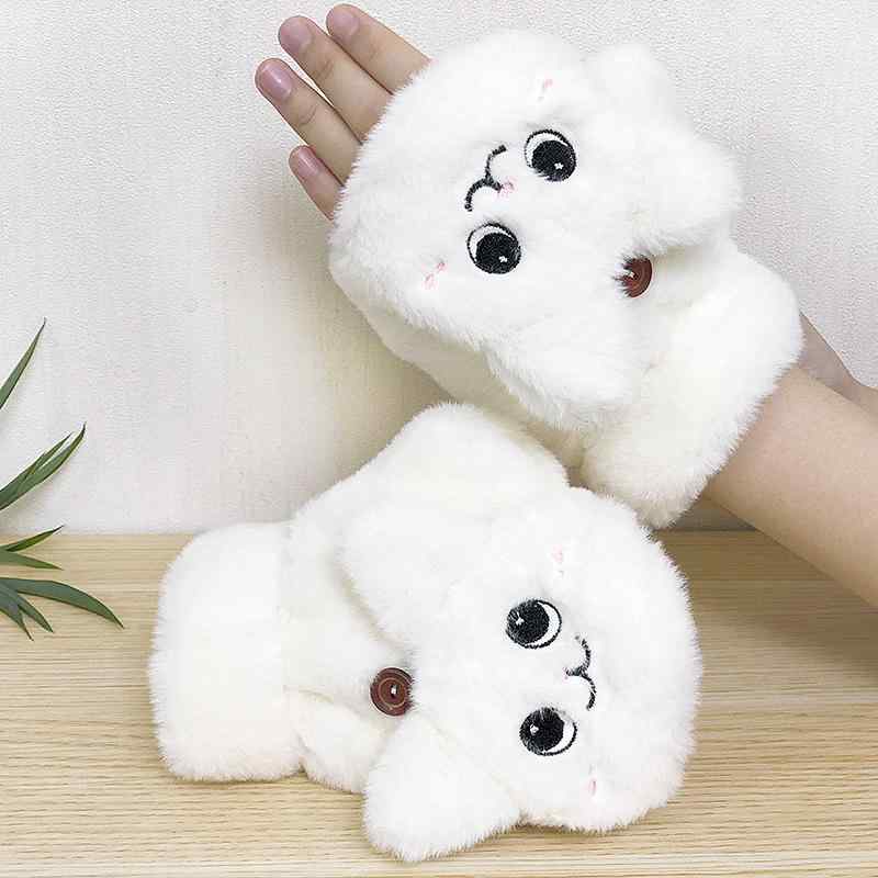 手袋 ミトン 指なし 指切り ふわふわ もこもこ ファー 裏起毛 防寒 保温 フェイクファー 暖かい 猫柄 可愛い