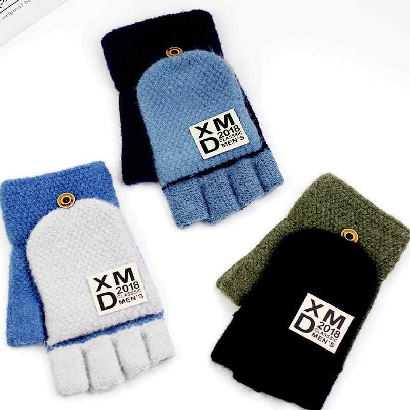 手袋 男性用 ニット手袋 秋冬 防寒 半指 指なし 2way フリップカバー付き 無地 ビジネス オ・・・