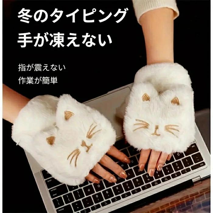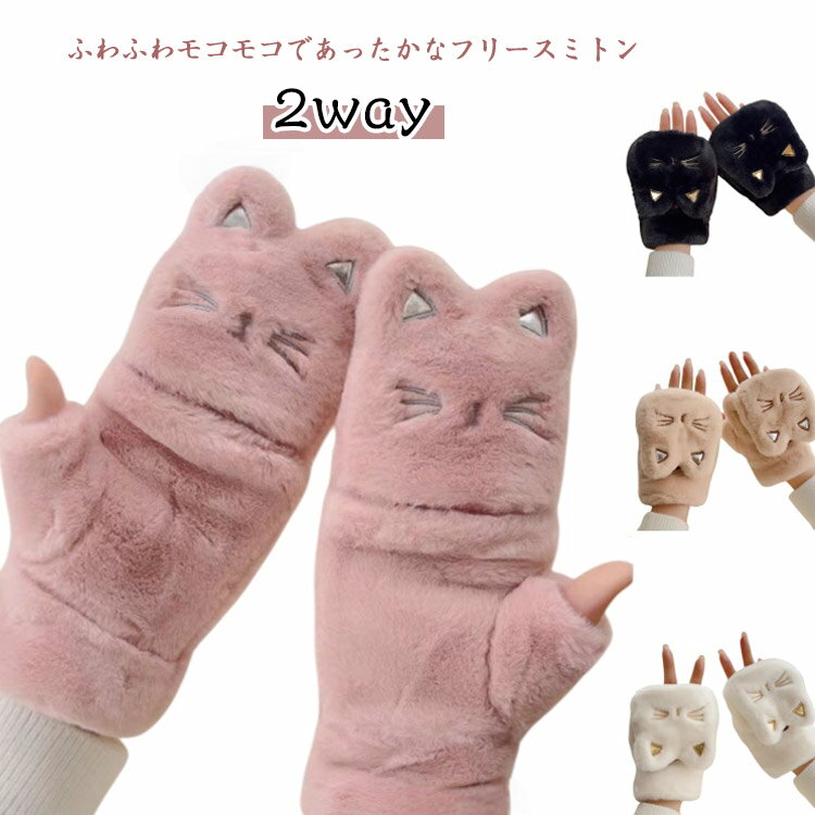 2way もこもこ手袋 レディース 猫 かわいい あったか スマホ対応 防寒