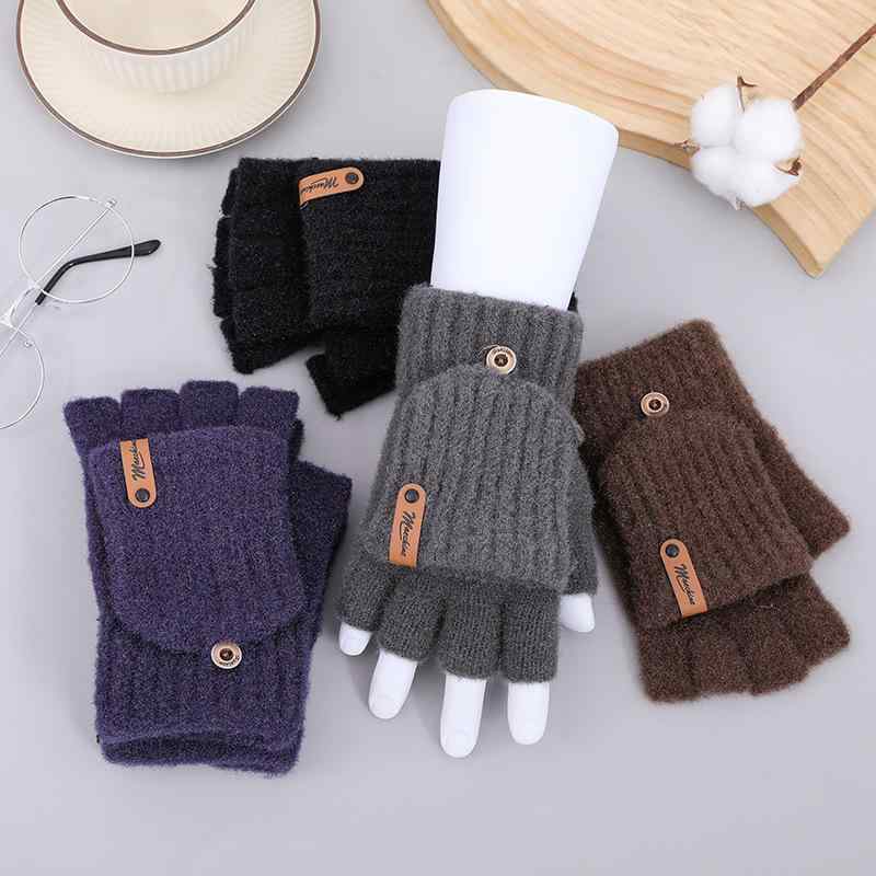 手袋 男女兼用 秋冬 サンゴフリース 指なし フリップカバー 2WAY 保温 防寒 あったか ソフト・・・