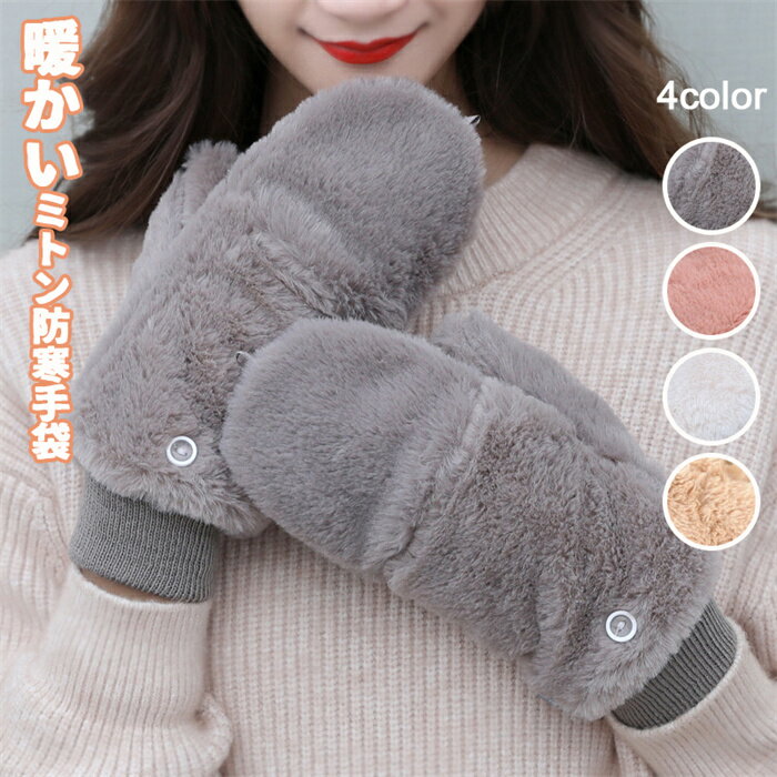 手袋 ミトン レディース 女の子 もこもこ ミトン手袋 指切り手袋 2WAY 指出し 裹起毛 ファー・・・