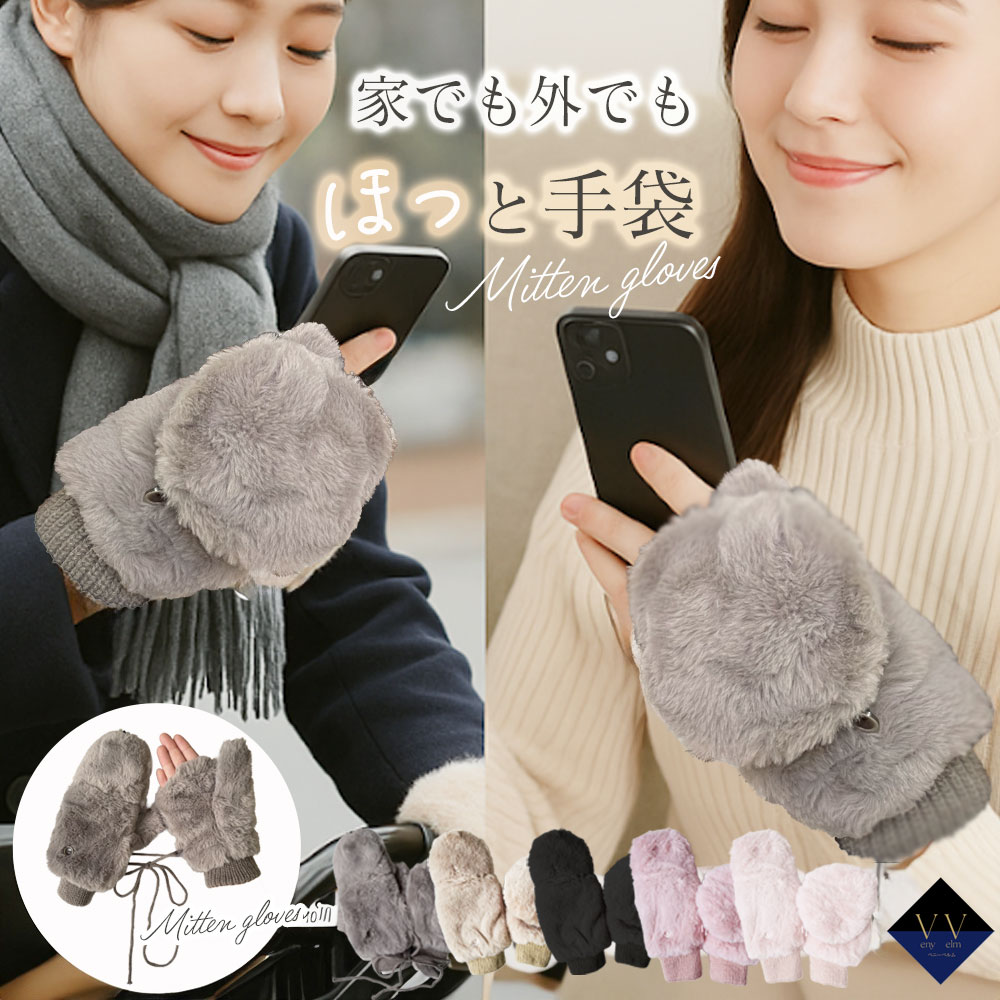 裏起毛で暖か?ふわふわなミトンと指切りの2way手袋 手袋 ミトン