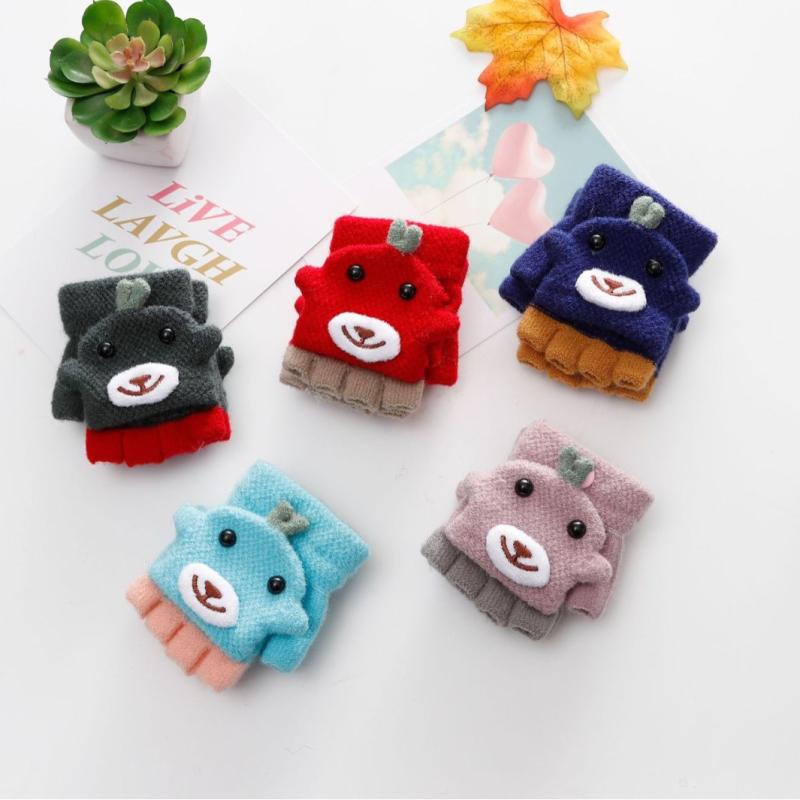 手袋 キッズ 子供用 手袋 防寒 あったか ニット 半指 指なし 2way コアラ 動物 アニマル ・・・