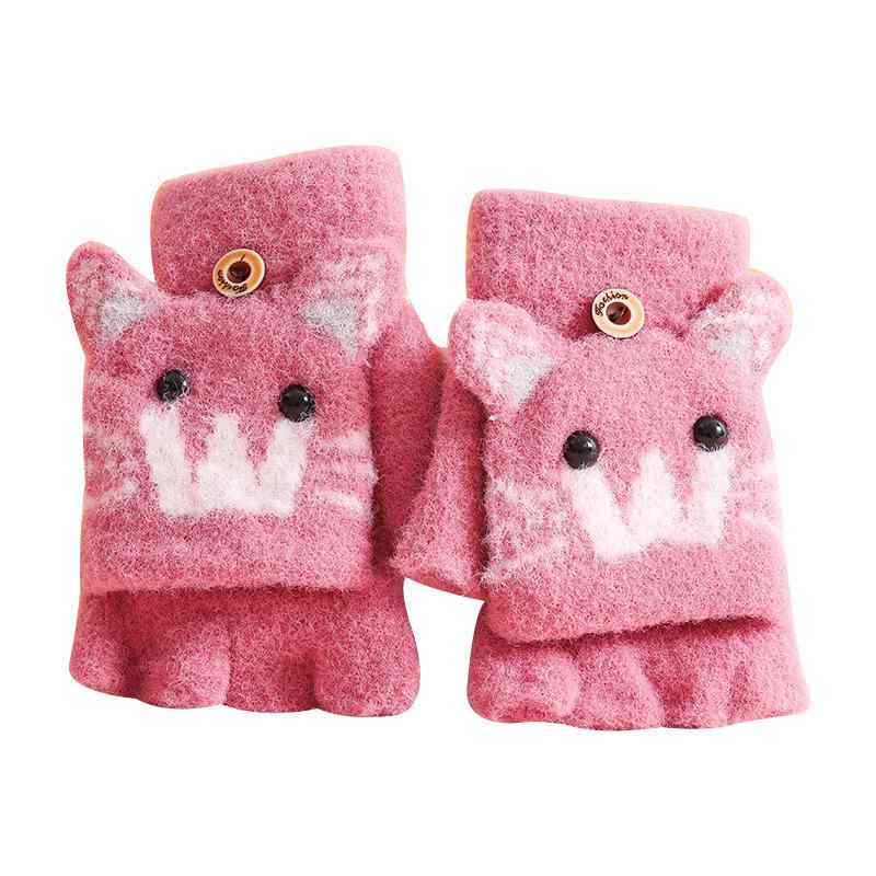 手袋 キッズ 秋冬 かわいい ジャガード織り 2way 指なしフリップカバー モヘア ニット 保温 ・・・