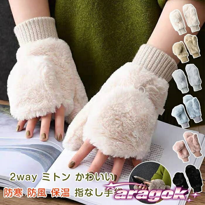 指なし 2way フィンガーレス 暖かい ジュニア かわいい ふわふわ おしゃれ 秋冬 もこもこ キ・・・