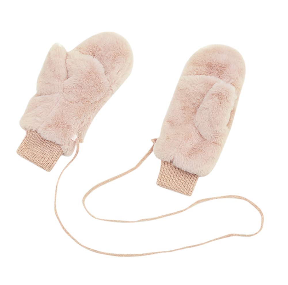 [Euyqs] 手袋 レディース フェイクファー 厚手 保温 防寒 ミトン ヒモ付き 2WAY 指な・・・