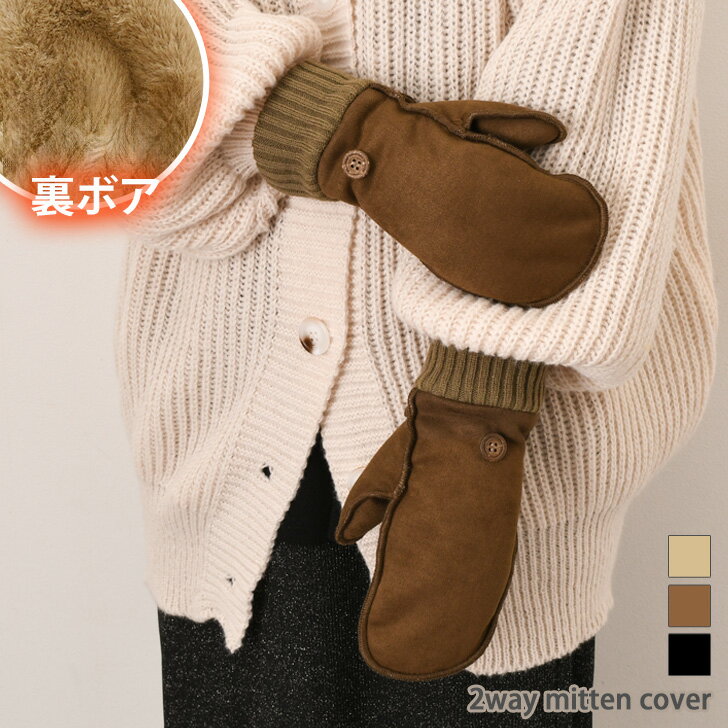 送料無料 ムートン風 2way 裏ボア ミトンカバー 手袋 レディース 防寒 スマホ対応 暖かい あ・・・