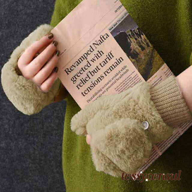 [MOWO]手袋レディース指なし手袋【ふわふわ柔い・保温効果に寒風ガード袖口】冬指出しミトンニット製・・・
