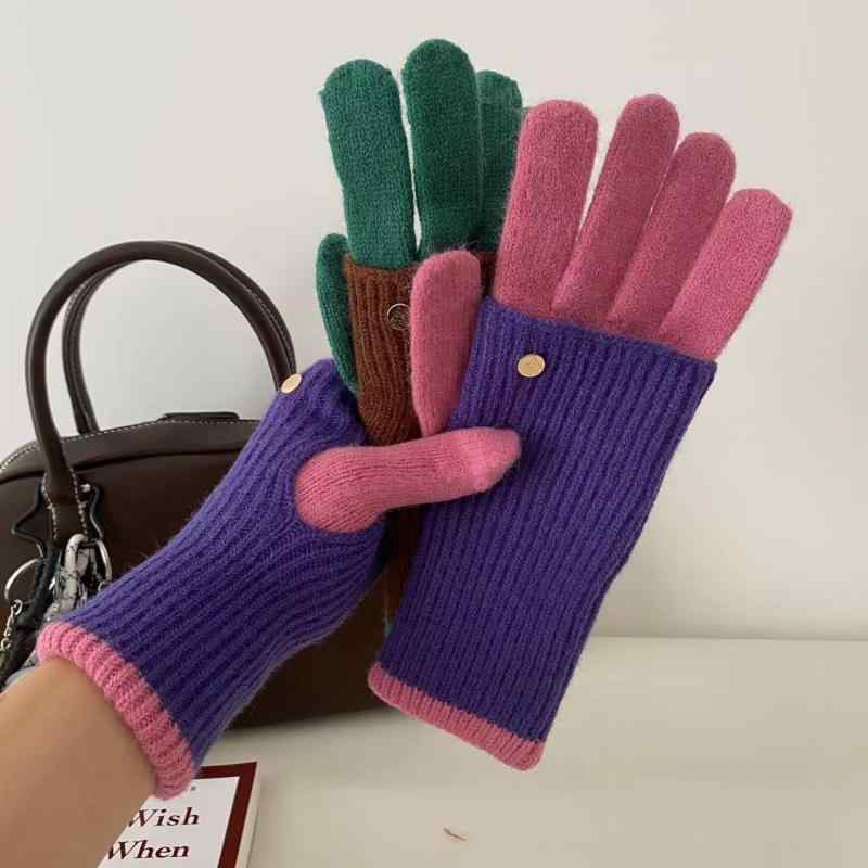 手袋 レディース ニット手袋 タッチパネル対応 防寒手袋 秋冬 指なし ミトン 2way バイカラー・・・