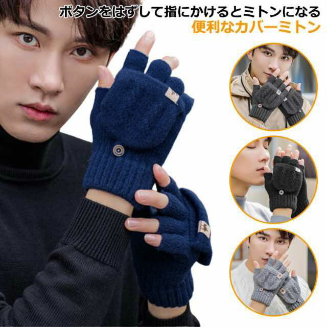 ミトン 手袋 ニット スマホ対応 指切り グローブ 秋冬 メンズ