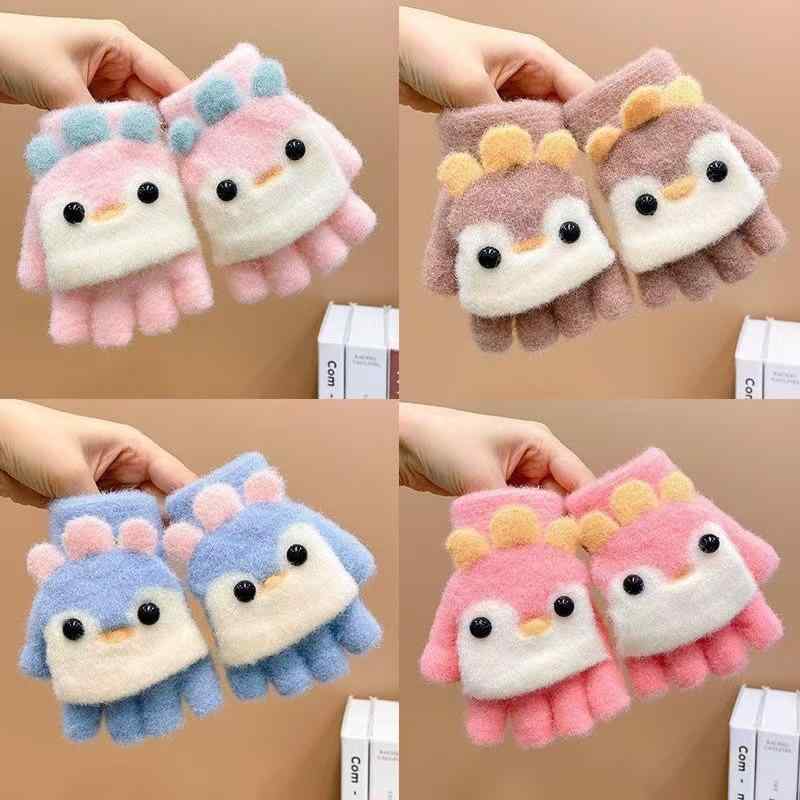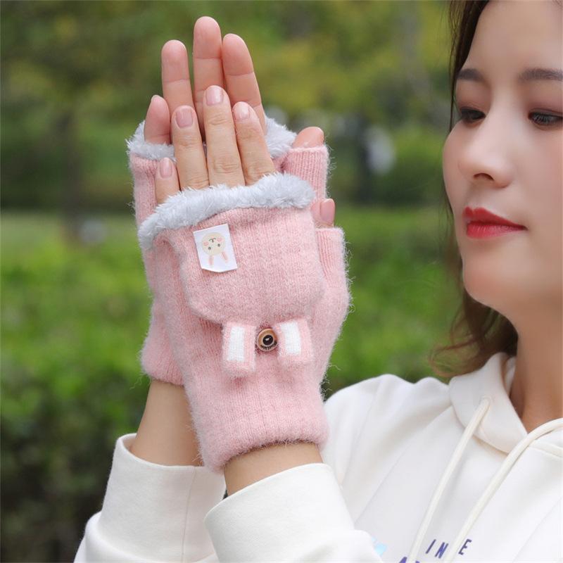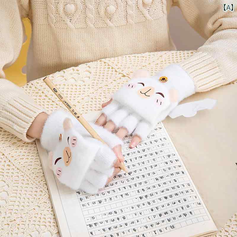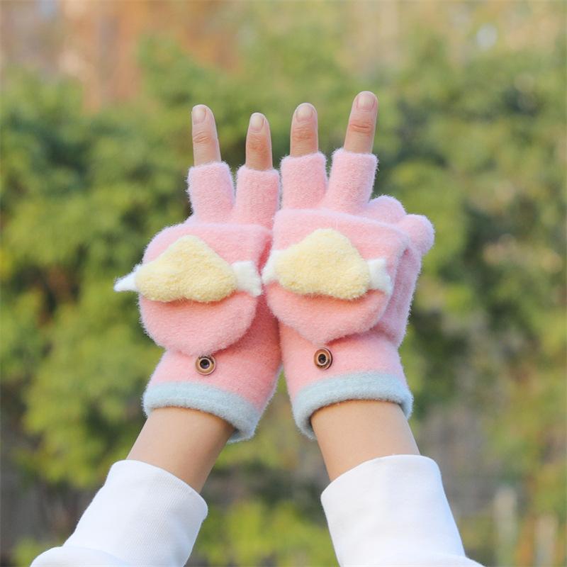 手袋 男女兼用 くま キャラクター ウィンク かわいい 防寒 保温 あったか グローブ 指なし カバ・・・