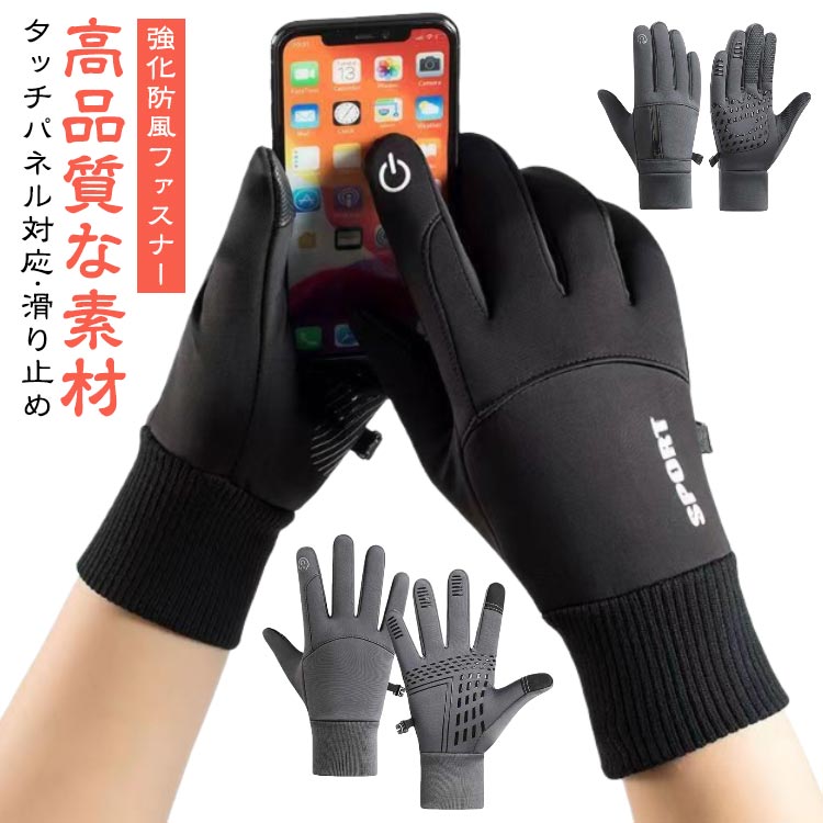 グローブ 防寒手袋【あったか裏起毛】手袋 スマホ対応 撥水加工 スポーツグローブ バイクグローブ 防寒グローブ 夜間活動 保温 手袋 厚手 裏起毛 防水 防風 滑り止め 紛失防止結び付け