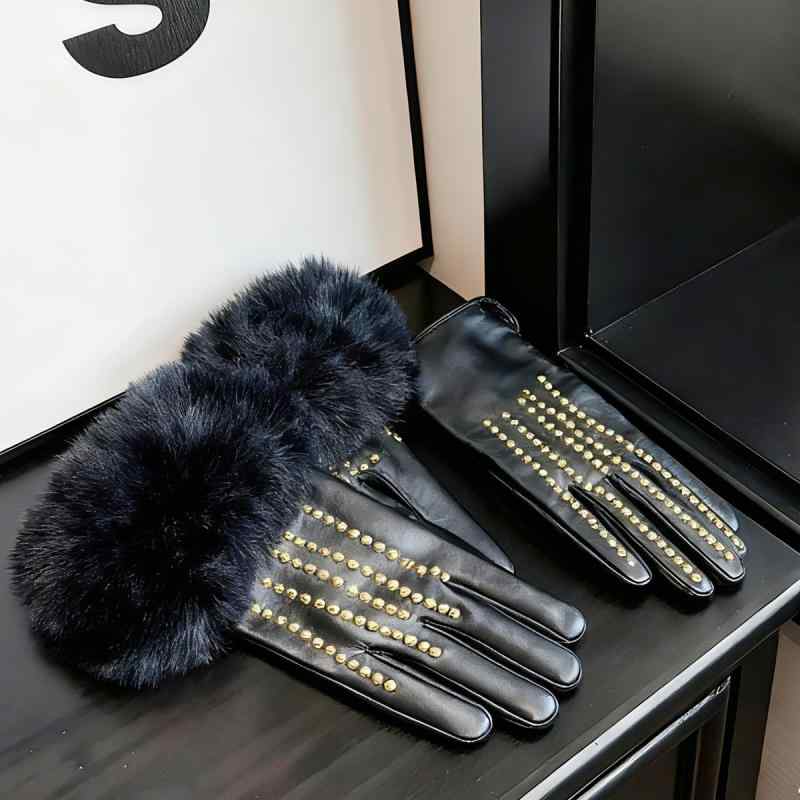 手袋 レディース 女性用 秋冬 PUレザー ファッション レトロ ラビットファー縁 裏起毛 保温 あ・・・