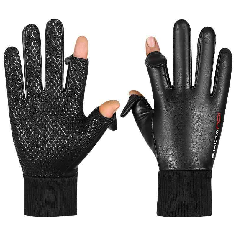 手袋 男性用 防寒グローブ 防水PUレザー スマートフォン対応 指なし 裏起毛 滑り止め 秋冬 通勤・・・