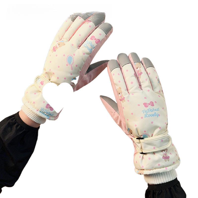 手袋 レディース かわいい 小熊 スキー手袋 秋冬 アウトドア 防風 防水 防寒 暖かい 裏起毛 ベ・・・