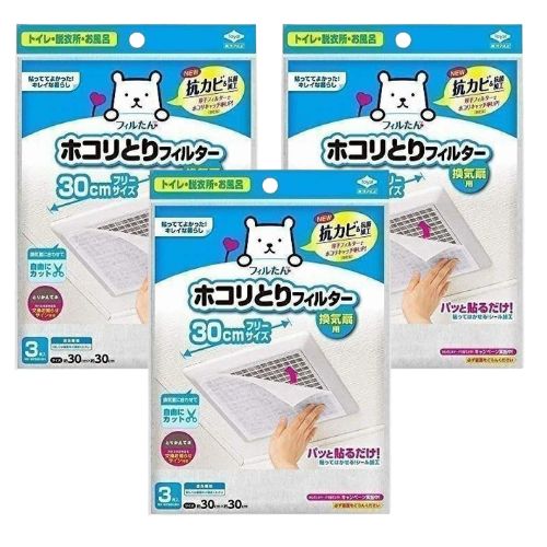 トイレやお風呂の換気扇用。パッと貼るだけで取付簡単、ホコリをキャッチするフィルター。30cm。