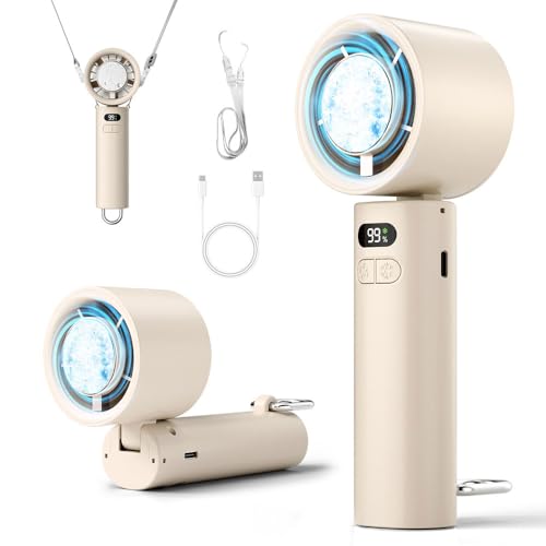 ハンディファン 冷却プレート 手持ち扇風機 小型 扇風機 通勤にお勧め 静音 2025年最新 ストラップ付属 ペルチェ素子冷却 電池内蔵 6200mAh LCD表示 通勤通学 旅行 屋外作業 観戦