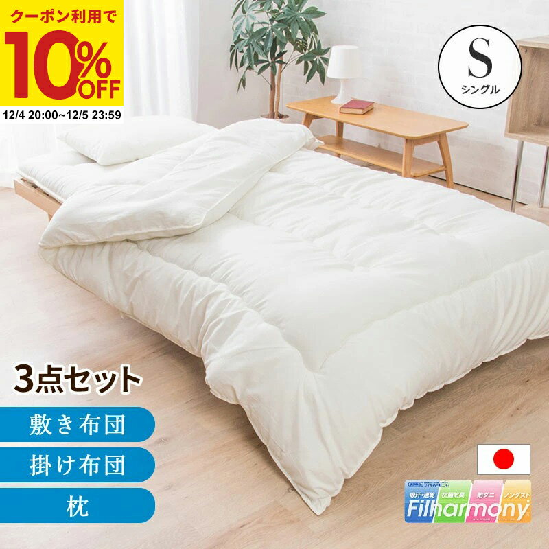日本製 布団セット シングルサイズ 3点セット 東洋紡フィルハーモニー 防ダニ ふとんセット 組布団 布団 ふとん 枕 新生活 国産 東洋紡フィルハーモニィ