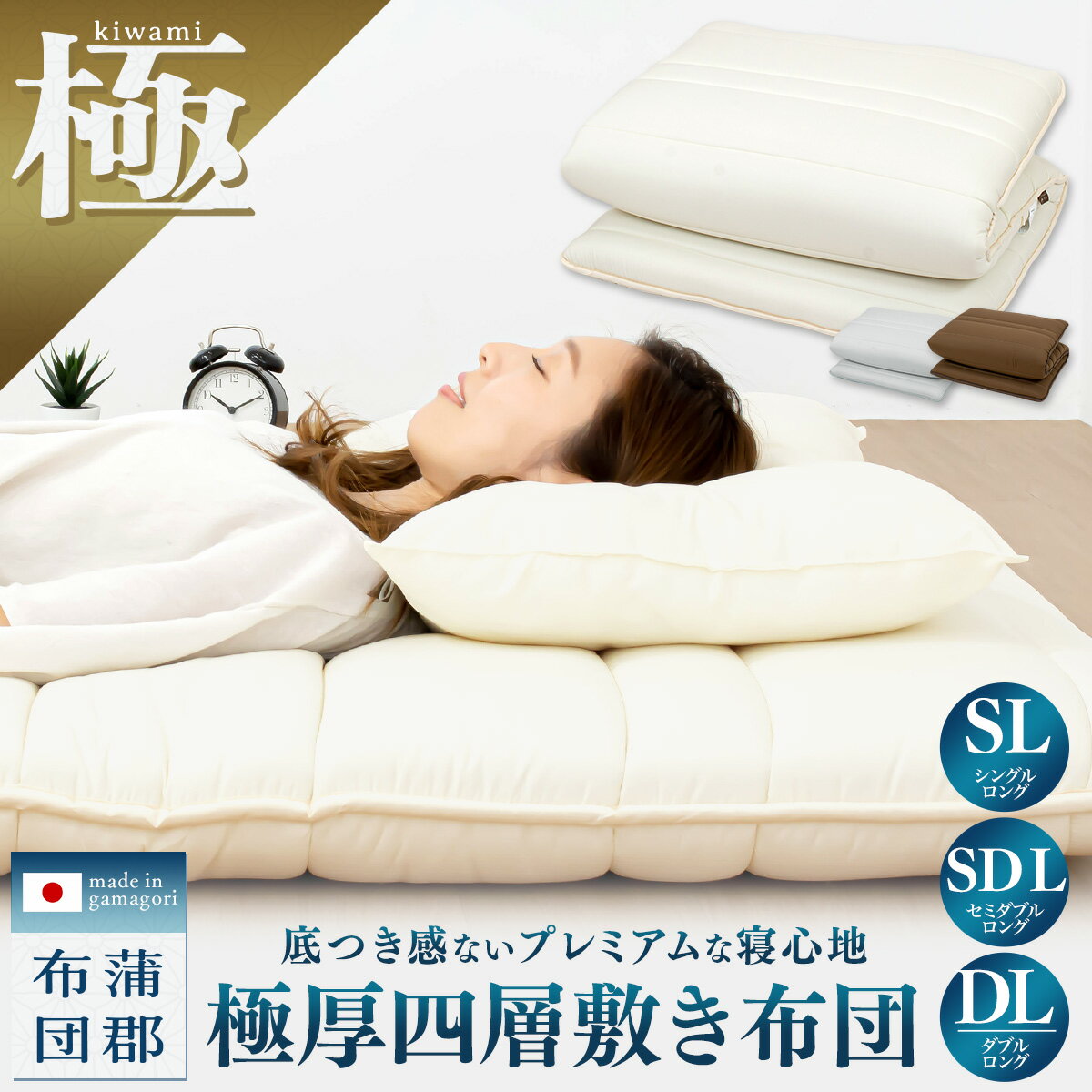 敷き布団 シングル 敷布団 防ダニ 日本製 セミダブル ダブル 抗菌防臭 敷きふとん 来客用 マットレス不要 厚い 硬め ふとん 寝具 四層 国産 おすすめ フローリング 厚手 敷き1 kiwami