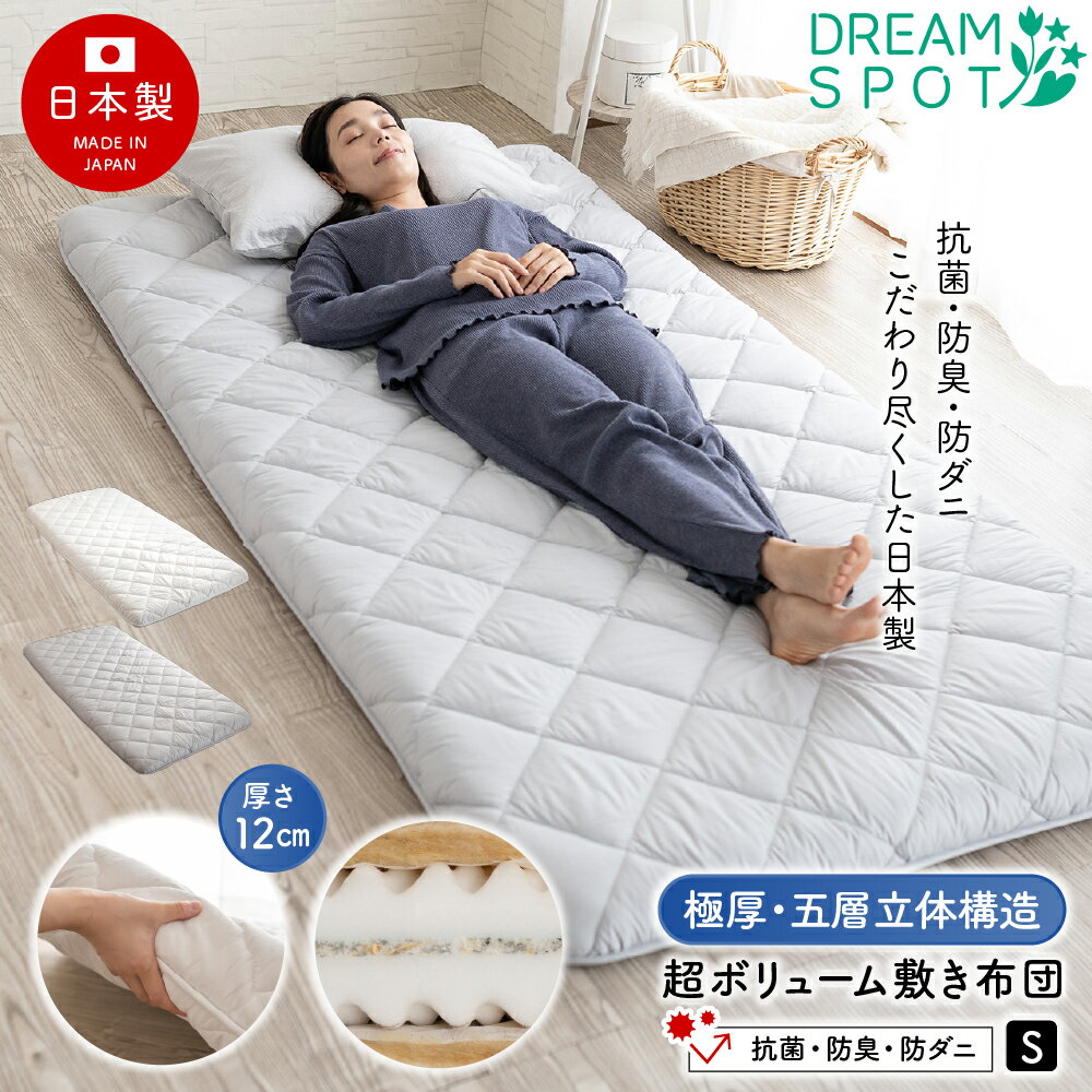 敷き布団 日本製 極厚 シングル 厚さ12cm 敷布団 沈まぬ安心 体圧分散 布団 ふとん 清潔敷布・・・