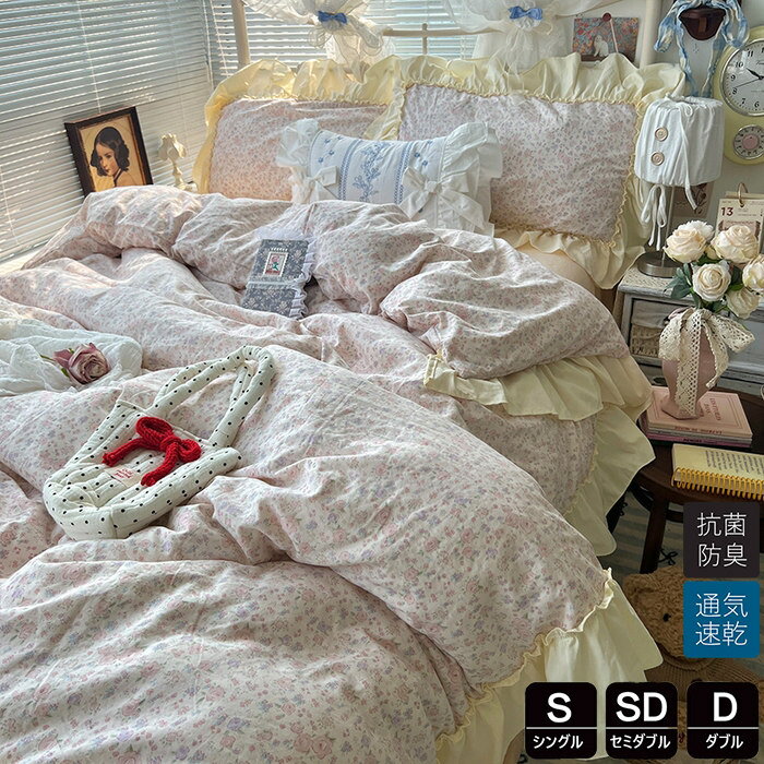 布団カバー 3点セット 掛け布団カバー シングル おしゃれ フリル付き 花柄 羽毛布団カバー セミダ・・・