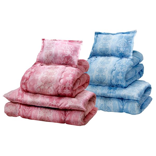 防ダニ・抗菌防臭加工 ほこりの出にくい ボリューム組布団 シングル16点セット ピンク系+ブルー系【・・・