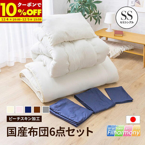 日本製 布団セット セミシングル カバー付き 6点セット ふとんセット 防ダニ カバー付 固綿入 東洋紡フィルハーモニー 布団 ふとん 布団カバー 枕 新生活 掛け敷き布団セット