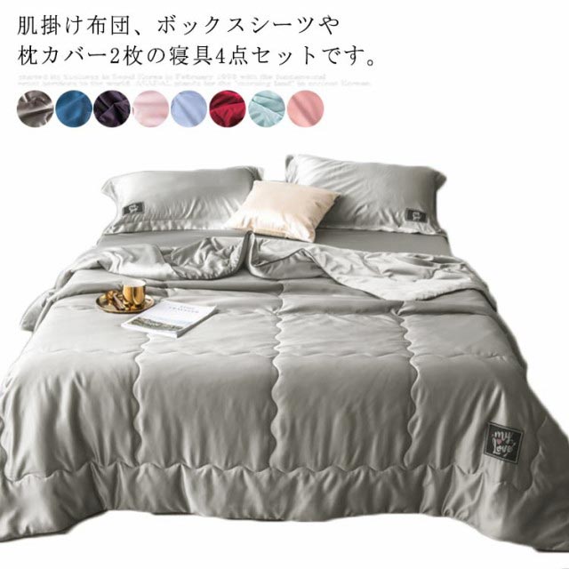 夏布団 涼感 肌掛け布団 冷感 4点セット シングル セミダブル ダブル 敷布団カバー ボックスシー・・・