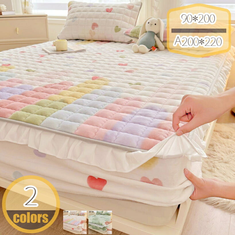 パッド一体型ボックスシーツ シングル ベットパッド 敷きパッド ベッドカバー フランネル マットレスパッド 敷きカバー オールシーズン 保温性 静電防止 快適 防ダニ 抗菌 防臭 吸汗
