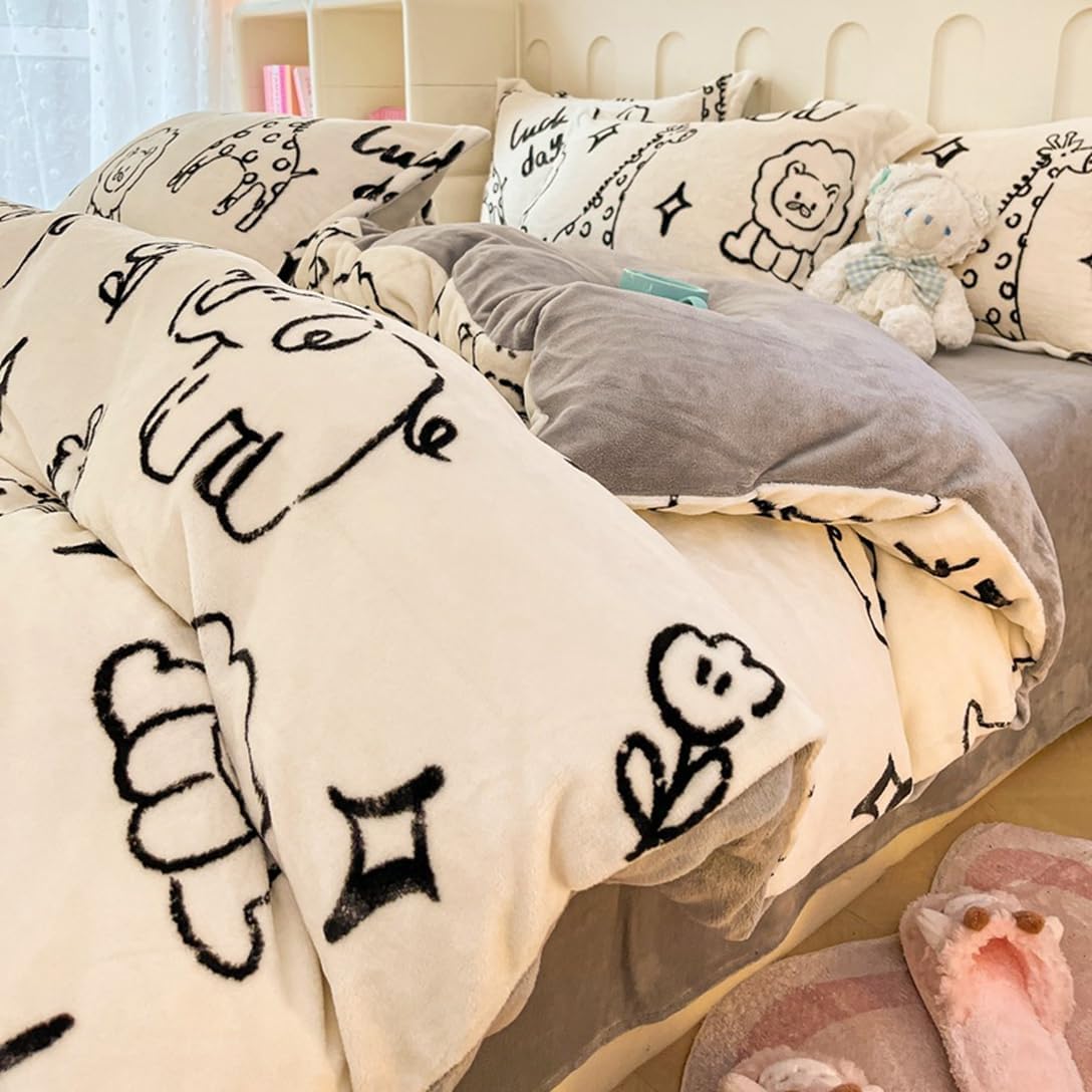 布団カバー シングル 3点セット 可愛い 寝具カバー フランネル ふわふわ 冬用 あったか 敷き布団・・・