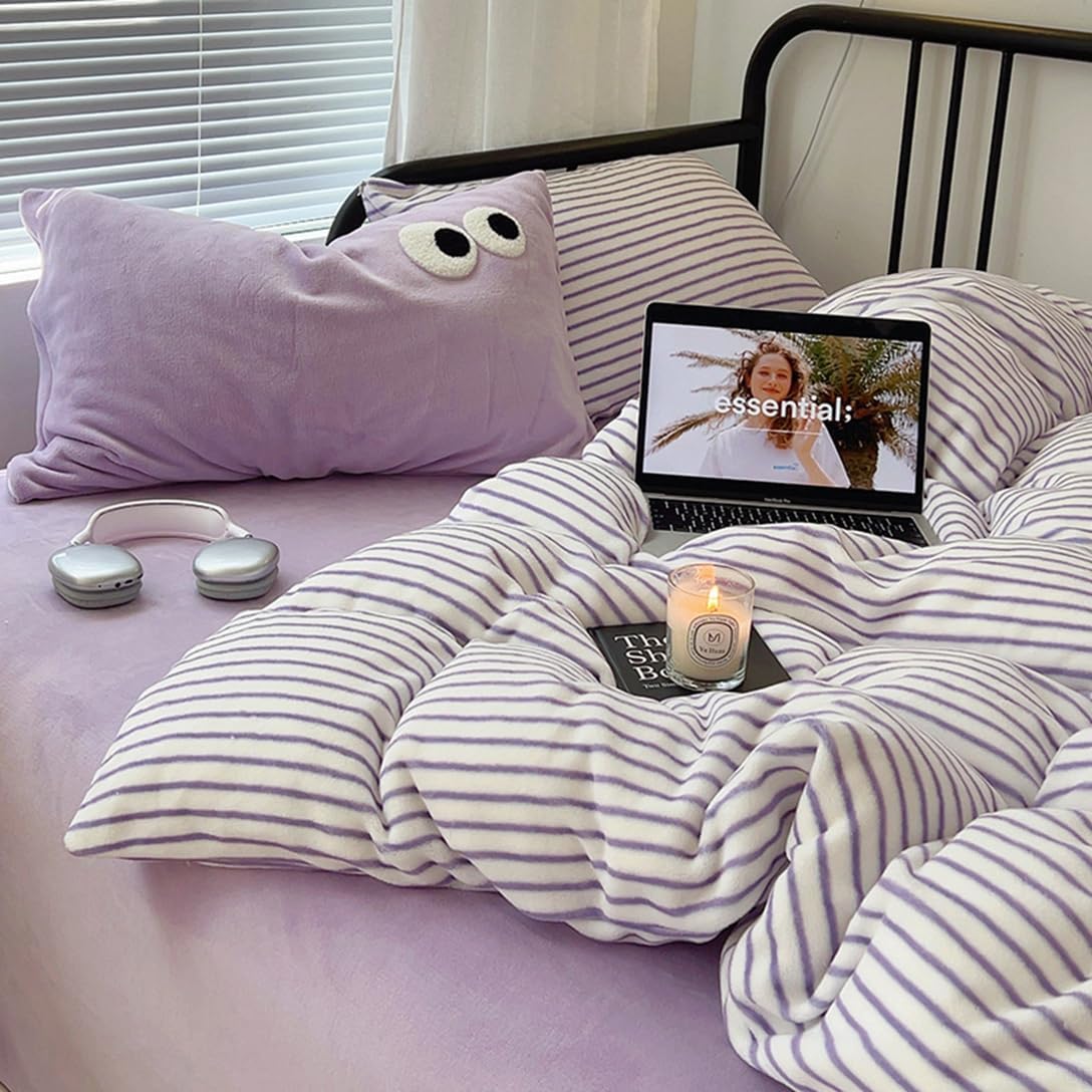 掛け布団カバー 冬用 シングル 3点セット 布団カバー シンプル ストライプ 敷き布団カバー フラン・・・