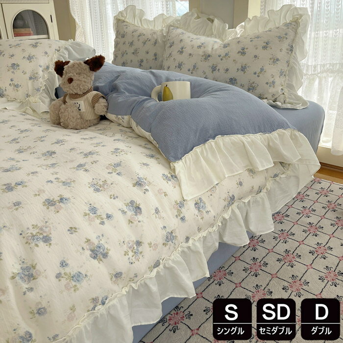 布団カバー 3点4点セット シングル 花柄 フリル付き 掛け布団カバー おしゃれ かわいい 敷布とん・・・