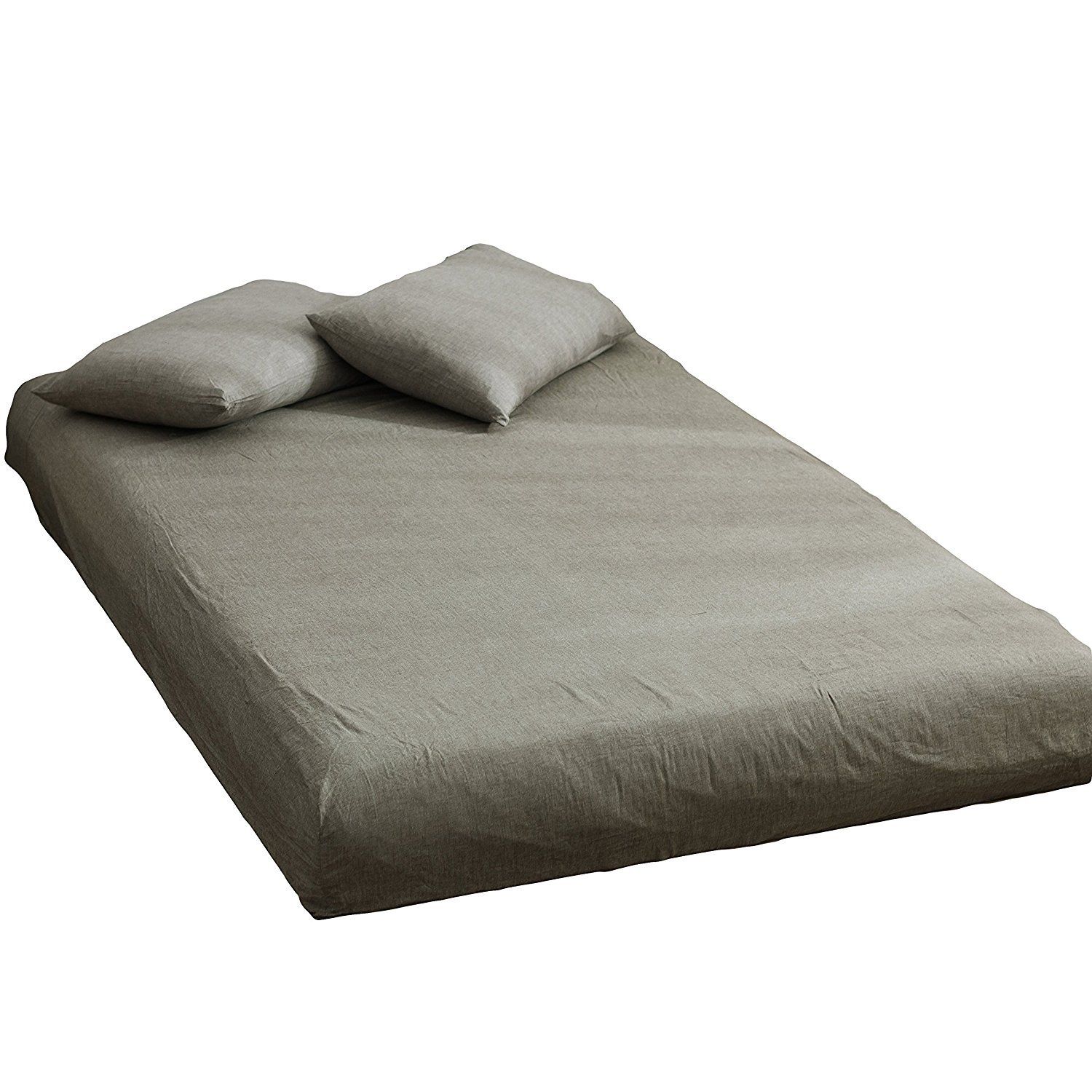 ボックスシーツ セミシングル 80x200x30cm マットレスカバー オーガニックコットン洗いざらしの綿100% マチ部分約30cm ベッドシーツ ベットカバー 洋式・和式兼用 防ダニ グレー