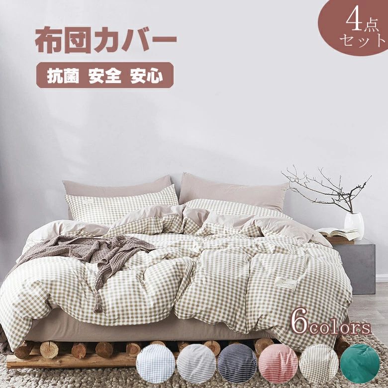 布団カバー 布団セット 3点セット シングル 4点セット 掛け布団カバー チェック柄 かわいい 寝具・・・