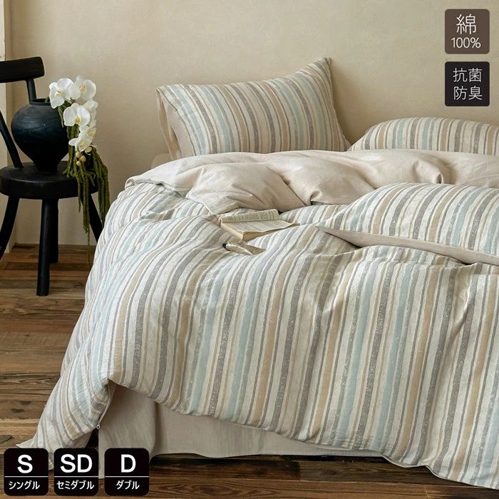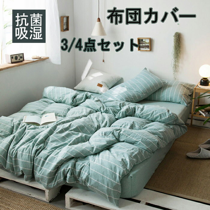 布団カバー 綿100% シングル 3点4点セット ストライプ柄 ふとんかばー 掛け布団カバー かわい・・・