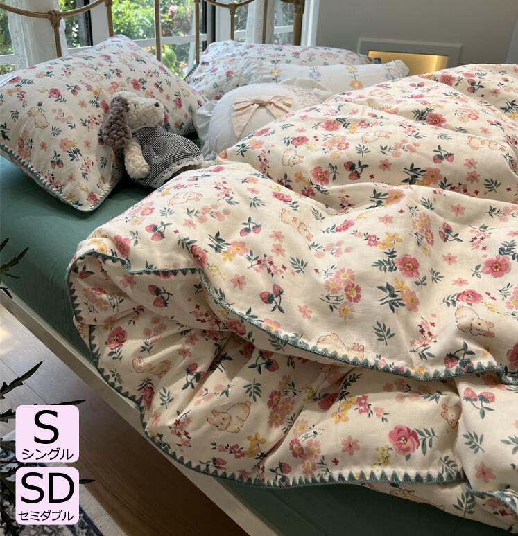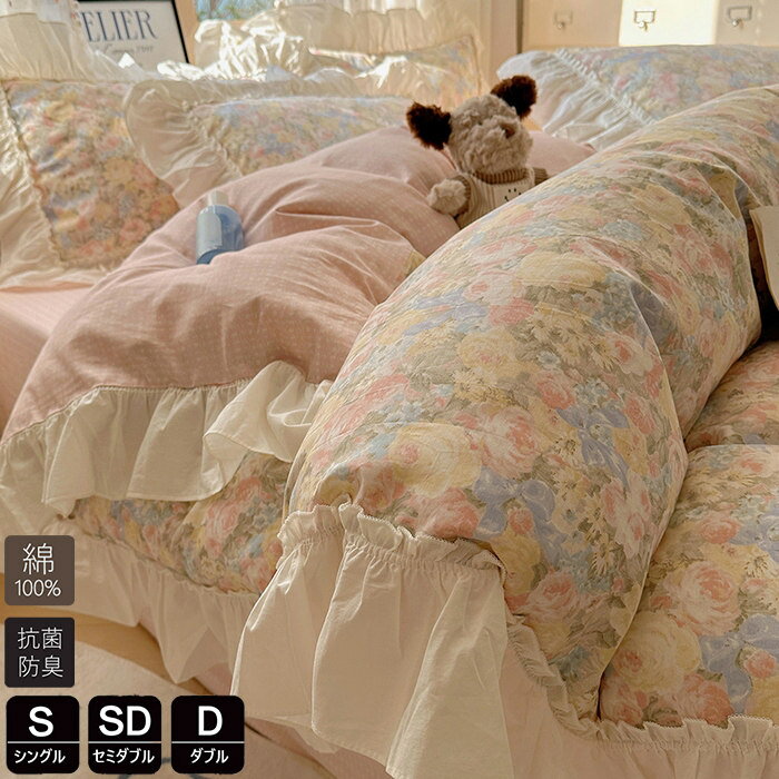 布団カバー 綿100% シングル 3点4点セット フリル付き 花柄掛け布団カバー かわいい おしゃれ・・・