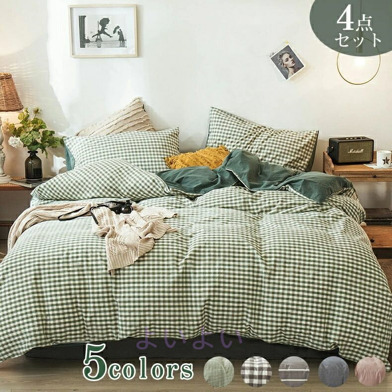 掛け布団カバー 綿100% チェック柄 布団カバー 寝具カバーセット 3、4点セット 高品質ベッド用・・・
