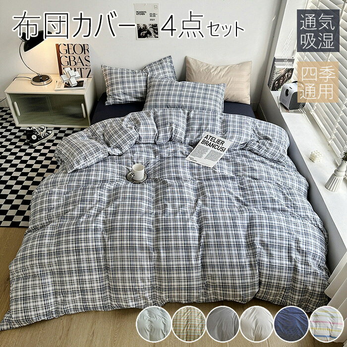 布団カバー 3点4点セット シングル ベッド用品 チェック柄布団カバー ストライプ柄 通気 吸湿 速・・・