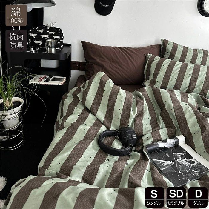 布団カバー 綿100% シングル 3点4点セットかわいい ストライプ柄 掛け布団カバーおしゃれ 羽毛・・・