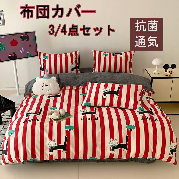 布団カバー 3点セット 掛け布団カバー シングル 綿100 おしゃれキャラクター 羽毛布団カバー セ・・・