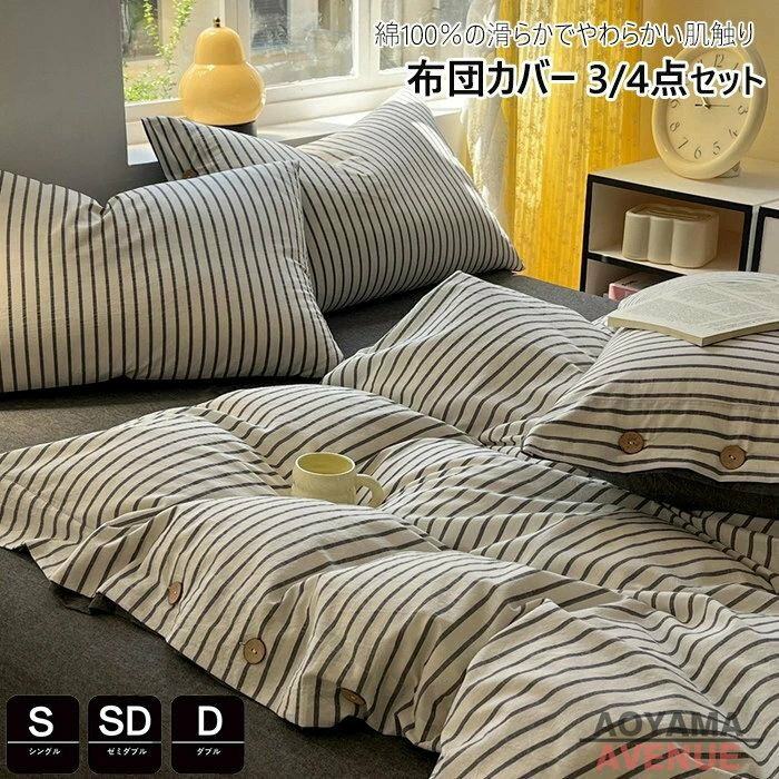 布団カバー 3点4点セット シングル ストライプ柄 掛け布団カバー おしゃれ セミダブル 布団カバー・・・