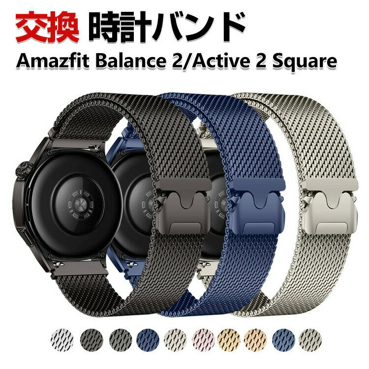 アマズフィット Amazfit Balance 2 Active 2 Square 用のがエレガントで おしゃれな 高級ステンレス 交換バンド オシャレ 交換簡単 磁気吸着 調節可能 ギフト 交換 ベルトbr>