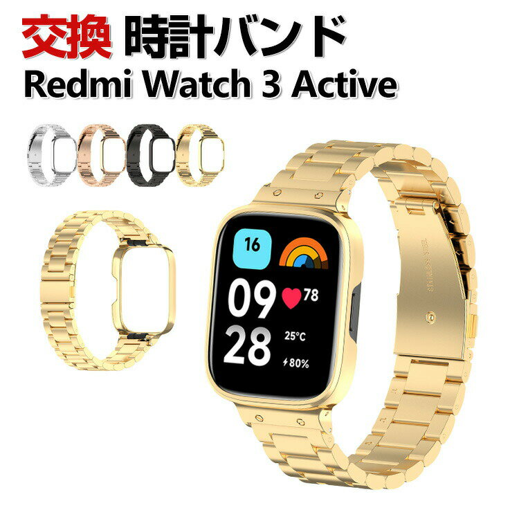 シャオミ Redmi Watch 3 Active 用のがエレガントで 高級ステンレス 交換バンド 交換簡単 交換リストバンド ベルト 交換 バンド