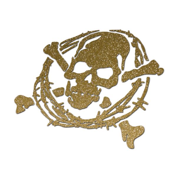 【中サイズ】ラメ入りスカルステッカー 切り抜きタイプC2有刺鉄線枠 13cm×11.8cm ゴールド・・・