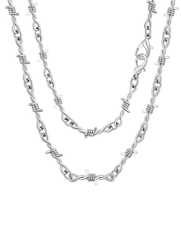 [FindChic] ネックレス メンズ シルバー チェーン 有刺鉄線 サージカルステンレス 金属ア・・・