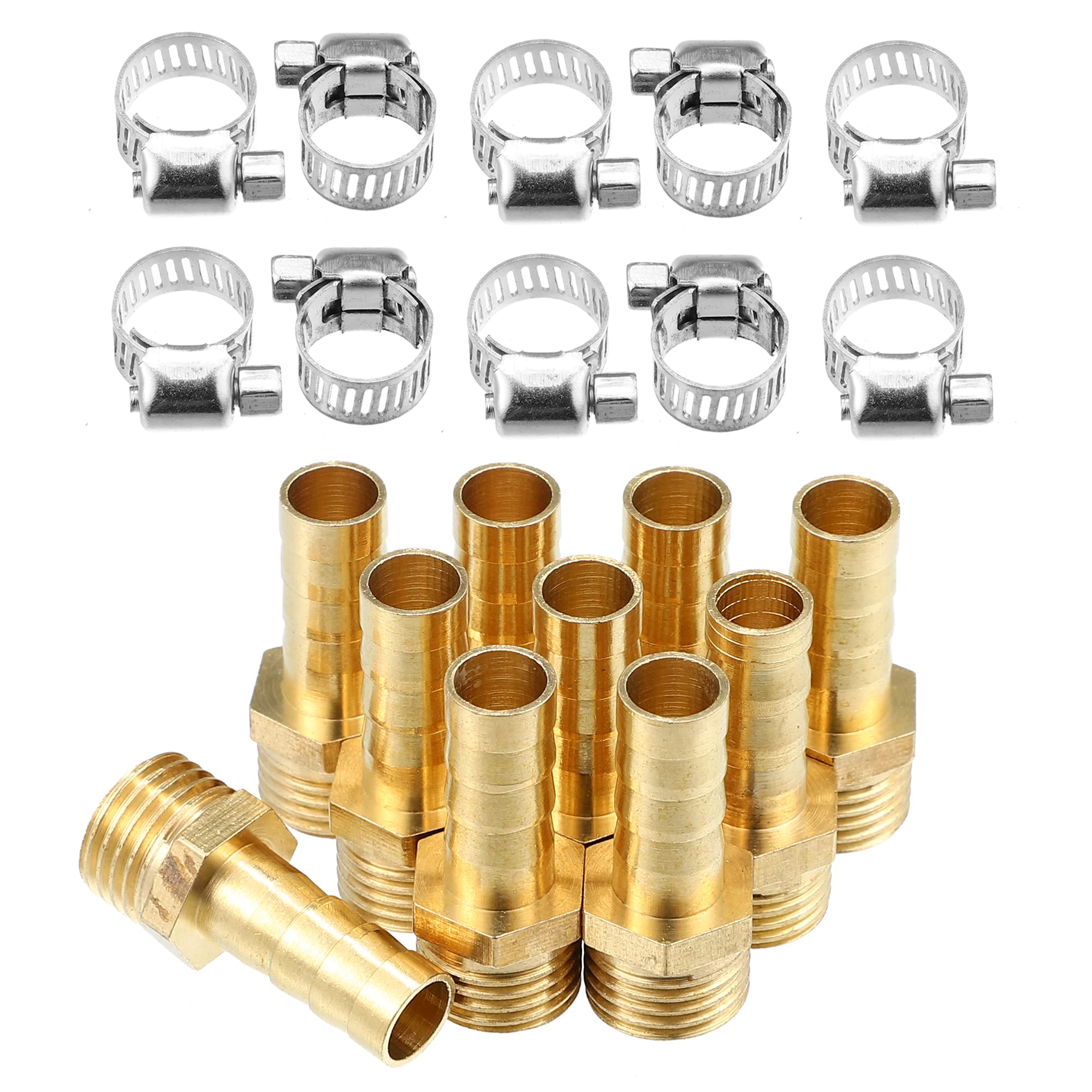 T 真鍮ホースソケット圧縮継手 テールオスネジアダプタ ホースバーブ クランプ付き 8 mm外径 有・・・